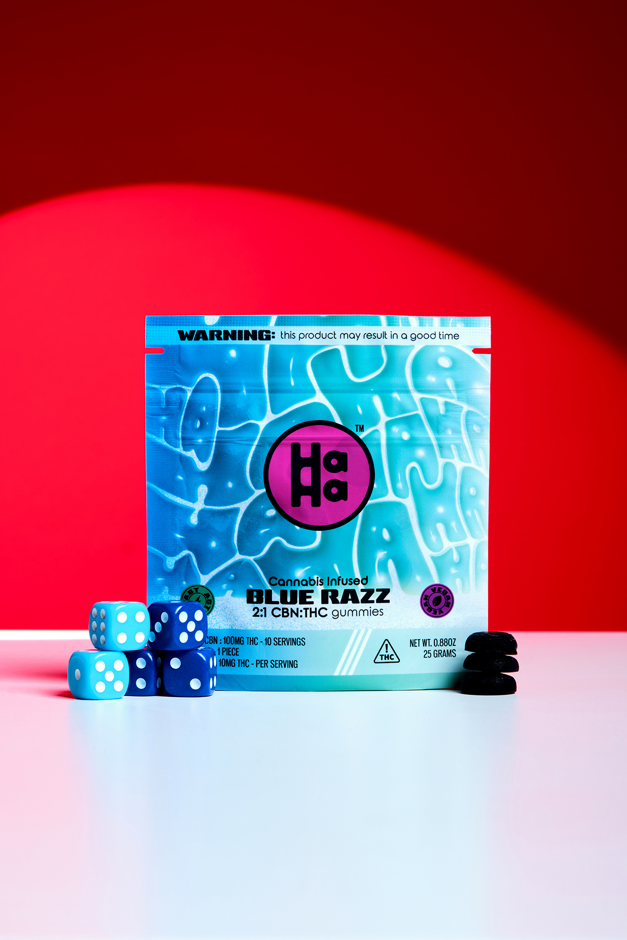 Indulge in the juicy, fruity flavor of HaHa Blue Razz vegan gummies, made from natural fruit juices and all-natural ingredients. These gummies deliver a soothing 2:1 ratio of 200mg CBN to 100mg THC, designed to provide deep body relaxation and tension relief. Whether you’re looking to unwind after a long day or ease into a calm, restful state, Blue Razzz gummies offer the perfect balance of flavor and relaxation